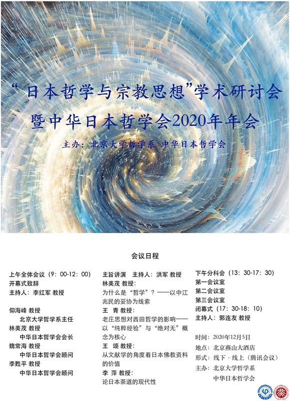| 第三场(15:50-16:50) 主持人:李萍 孙宝山:日本黄檗宗的历史及现状考察 耿子洁:九鬼周造的时间论与中国禅宗思想之关系辨析 冯 璐:试论西田几多郎的艺术论——以前期西田哲学中艺术与实在的关联为例 |