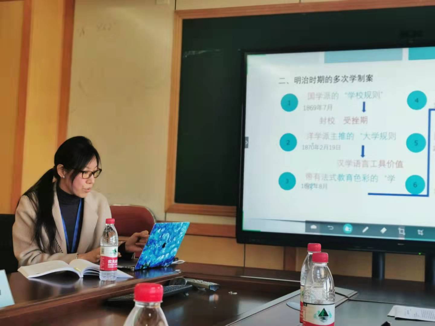 北京外国语大学日本学研究中心张晋老师作《明治时期民众思想家田中正造的民主思想刍议》报告,考察了田中正造的民主思想的产生受“国民国家意识”兴起的影响,其民主思想主要包含倡导地方自立的自治思想、开设国会赋予人民参政权利、崇尚宪法,建立责任内阁保障民权三方面内容。张晋老师指出,与政府轻视议会的超然主义的宪法解释相比,田中正造对于宪法的解释是站在国会(人民)立场上的。